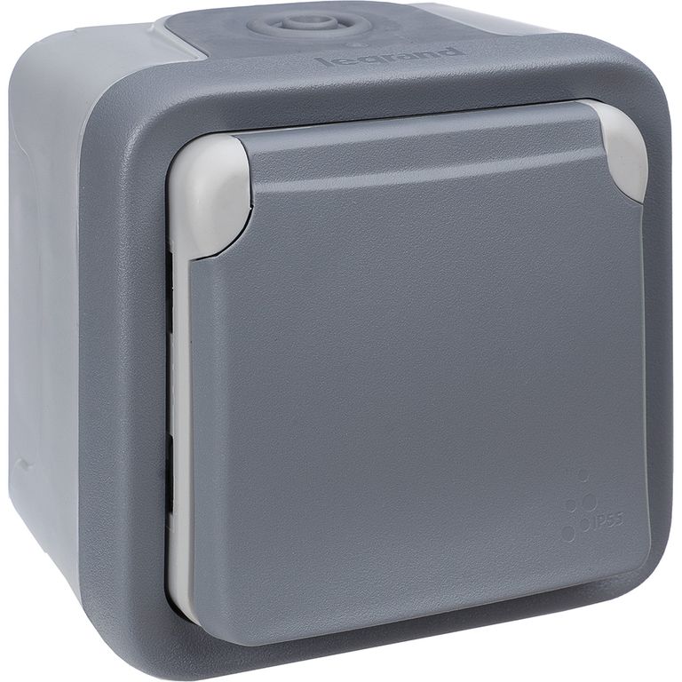 Legrand Plexo Серый Розетка с/з с крышкой, винтовой зажим, накладная, в сборе IP55