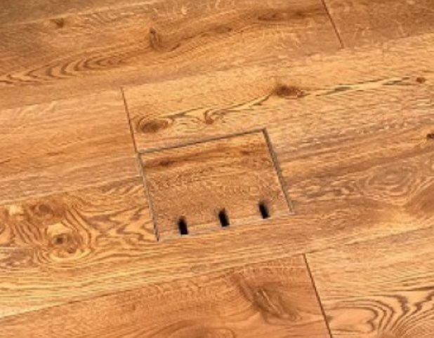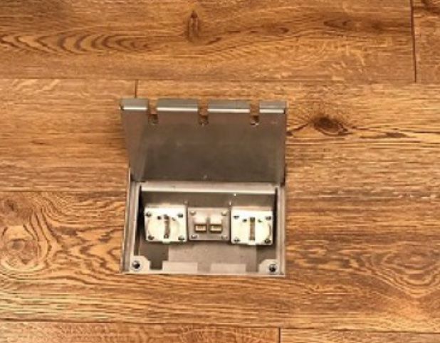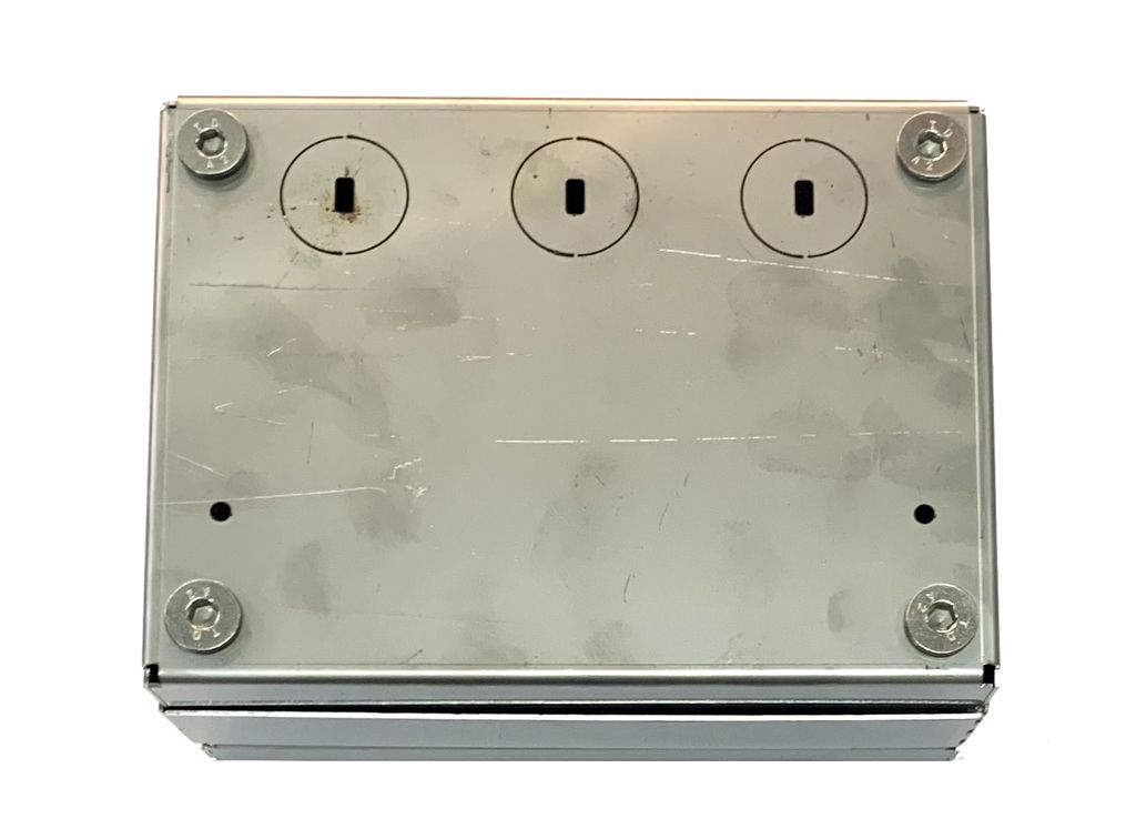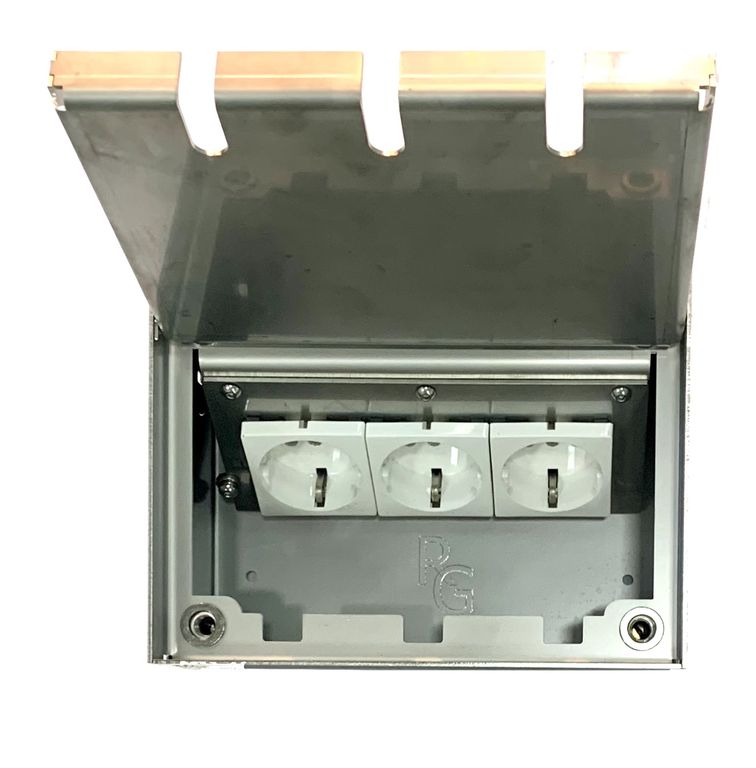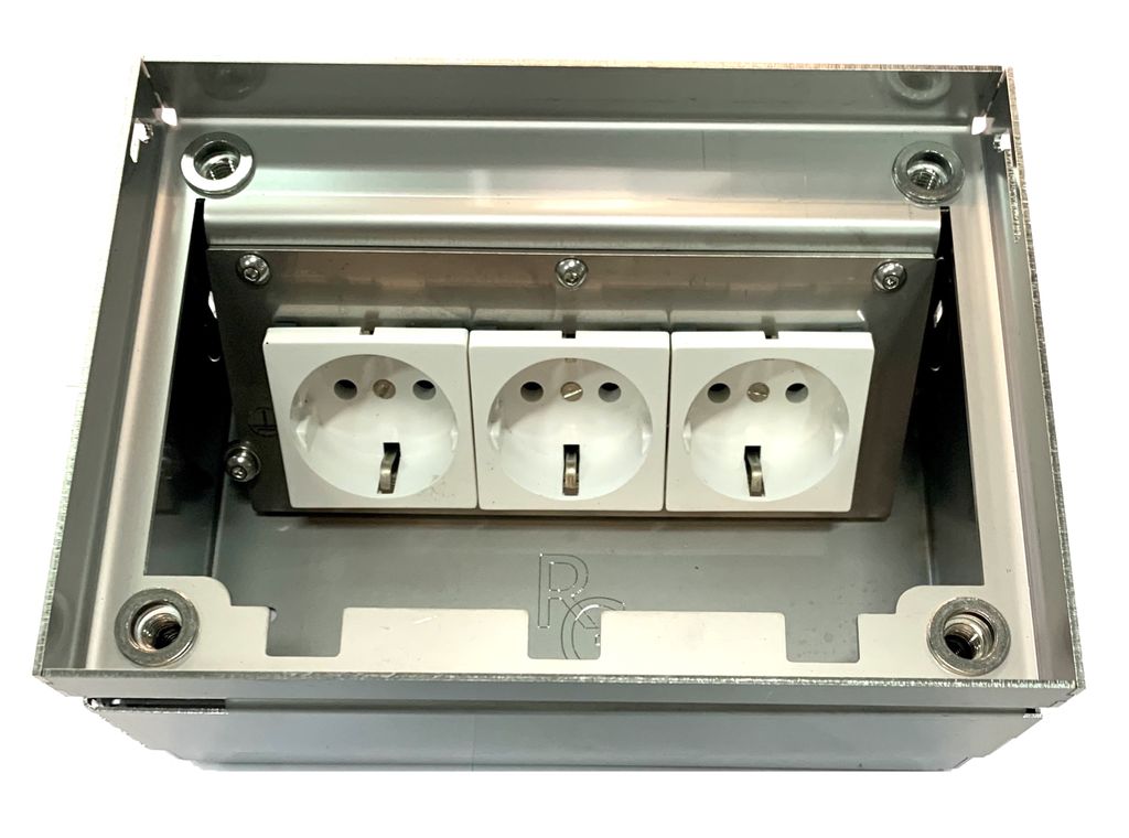 Лючок для установки заподлицо в пол трех розеток, нержавеющая сталь.