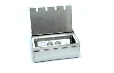 Лючок для установки заподлицо в пол четырех розеток, нержавеющая сталь.