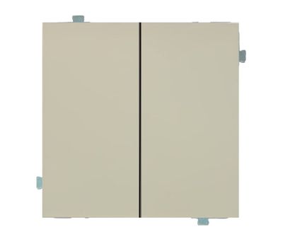 Кнопка двухклавишная состоит из двух компонентов — механизма кнопки и пары клавиш выбранного цвета. Механизм кнопки устанавливается в стандартный подрозетник с установочным диаметром 60 мм. Для окончательной сборки изделия необходимо добавить рамку с необходимым количеством постов.