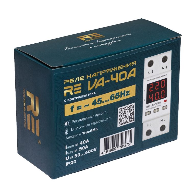 Реле защиты по напряжению и току однофазное 40 А, 230 В