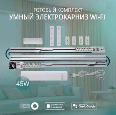 Умный WiFi электрокарниз в сборе ROXIMO SRTKIT длина 2 до 6 метров.