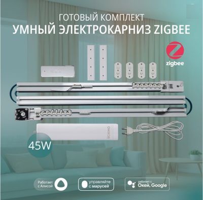 Умный Zigbee электрокарниз в сборе ROXIMO SRTKITZ длина 2 до 6 метров.
