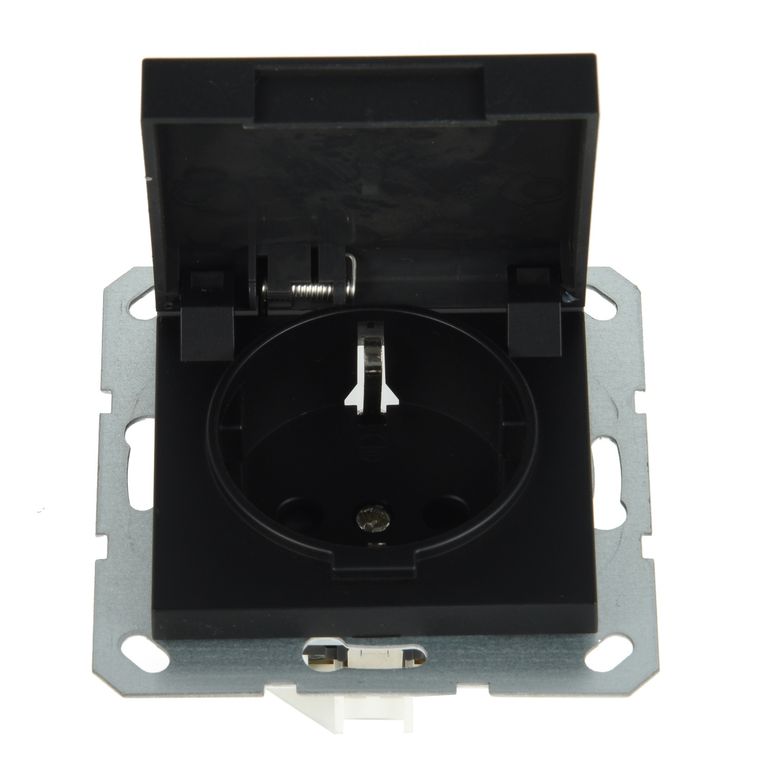 Розетка с заземляющим контактом с крышкой немецкого стандарта Wedder, матовый черный